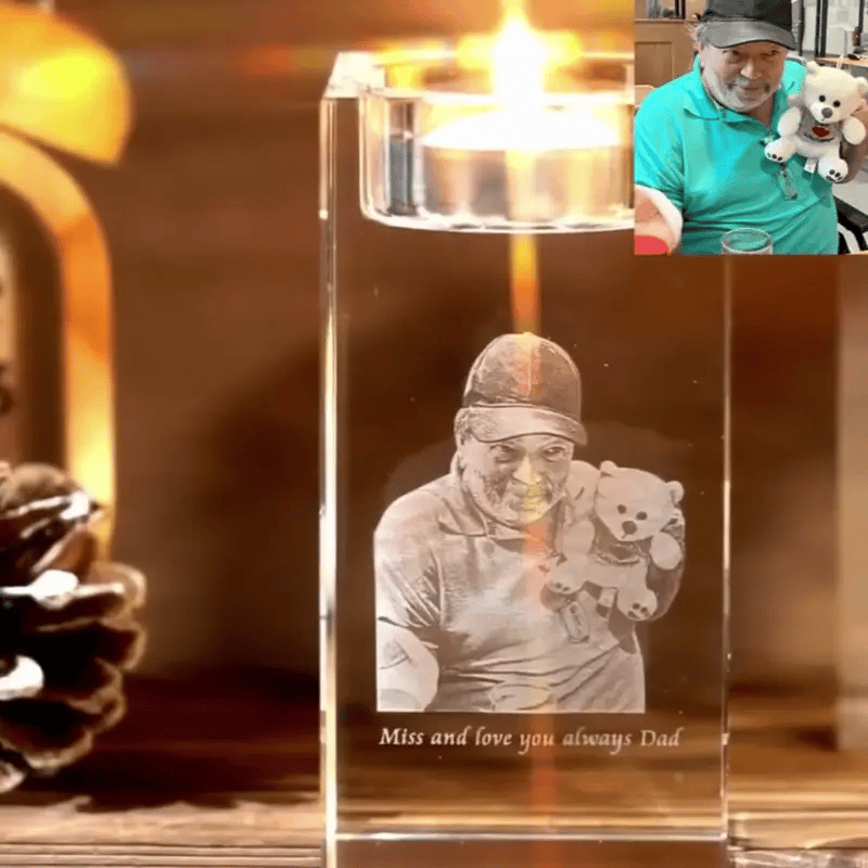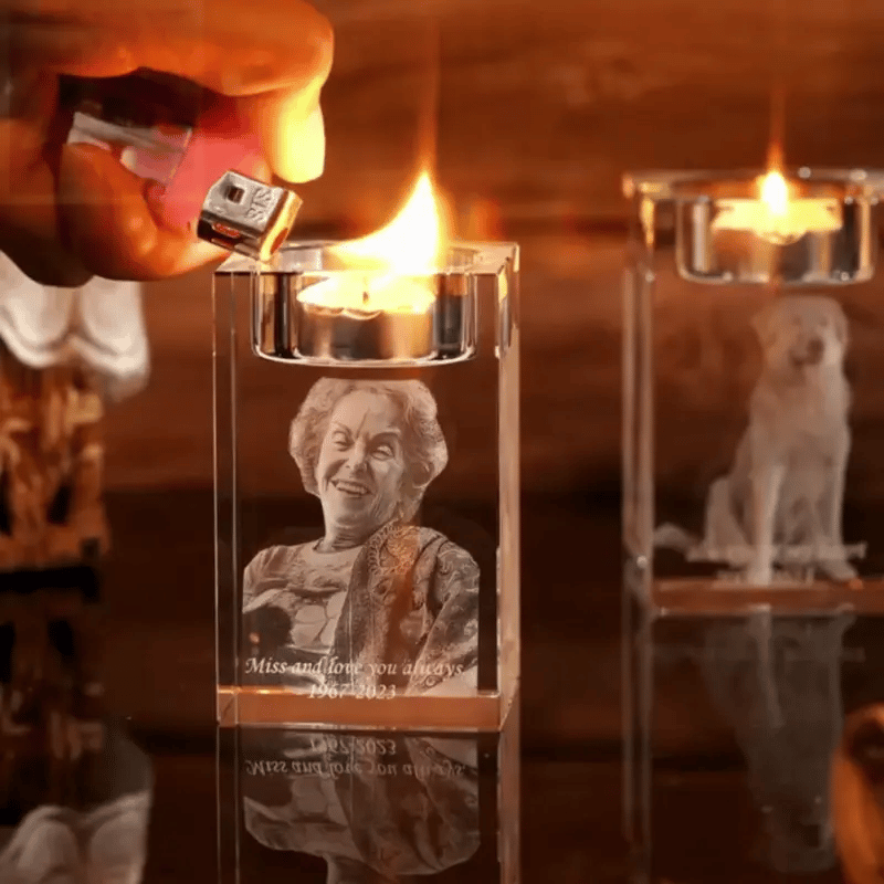 Forvandle ditt valgte foto til en dyp og detaljert 3D-gravering i en krystall som symboliserer din kjærlighet og savn.