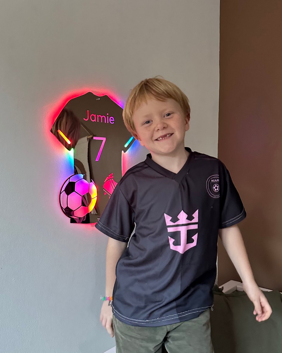 Tänk dig glädjen i deras ansikten när de ser sitt eget namn och tröjnummer visas på den här häftiga fotbollsspegeln!